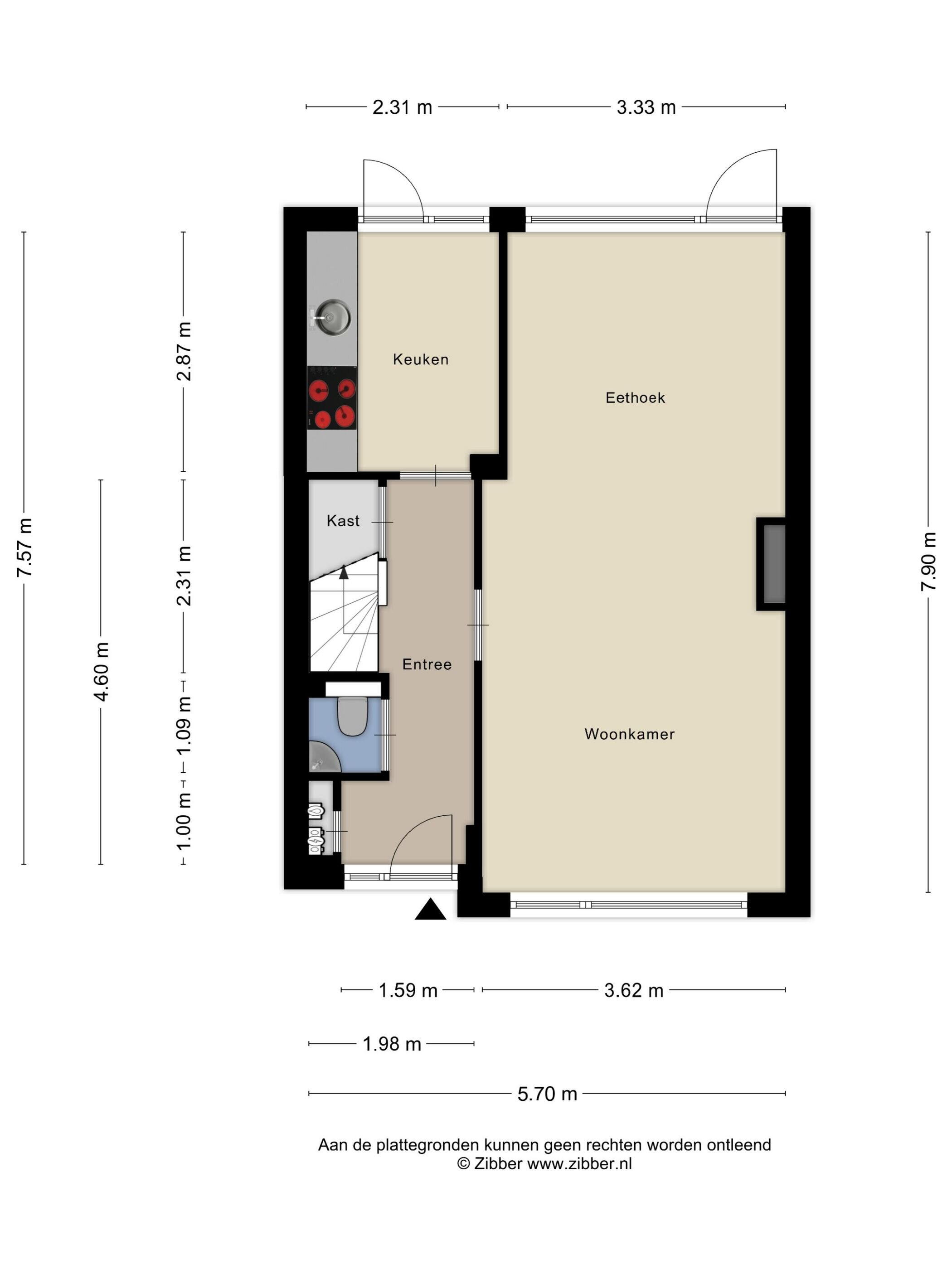 - 77 m² (13,00 meter diep en 5,90 meter breed)