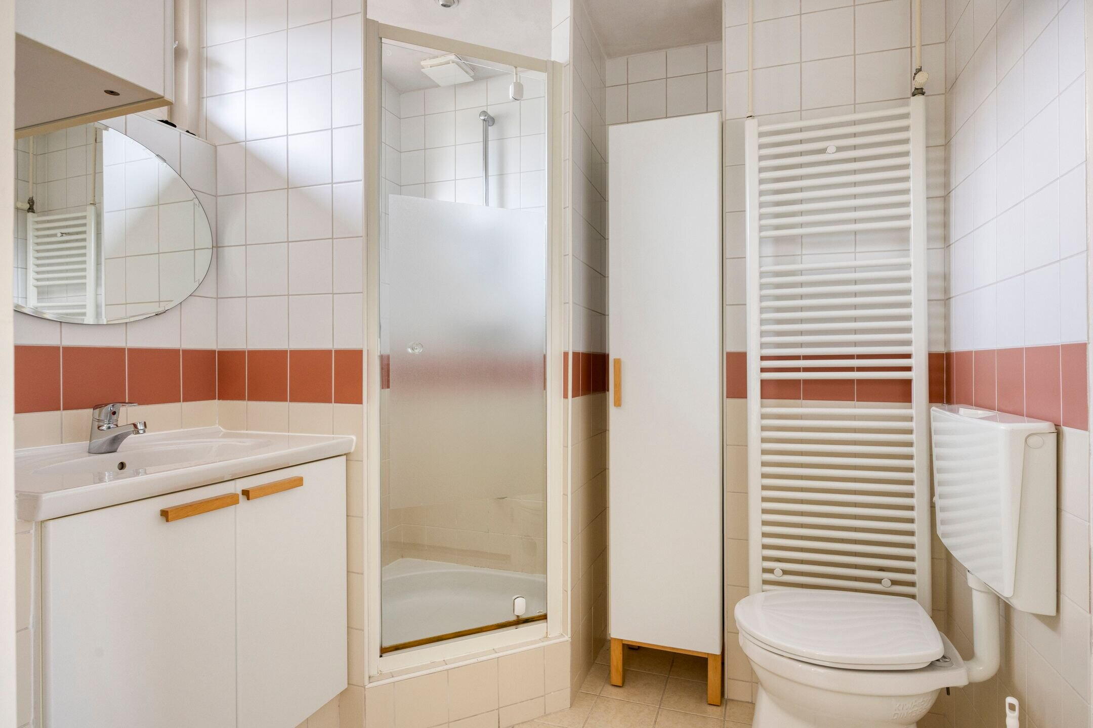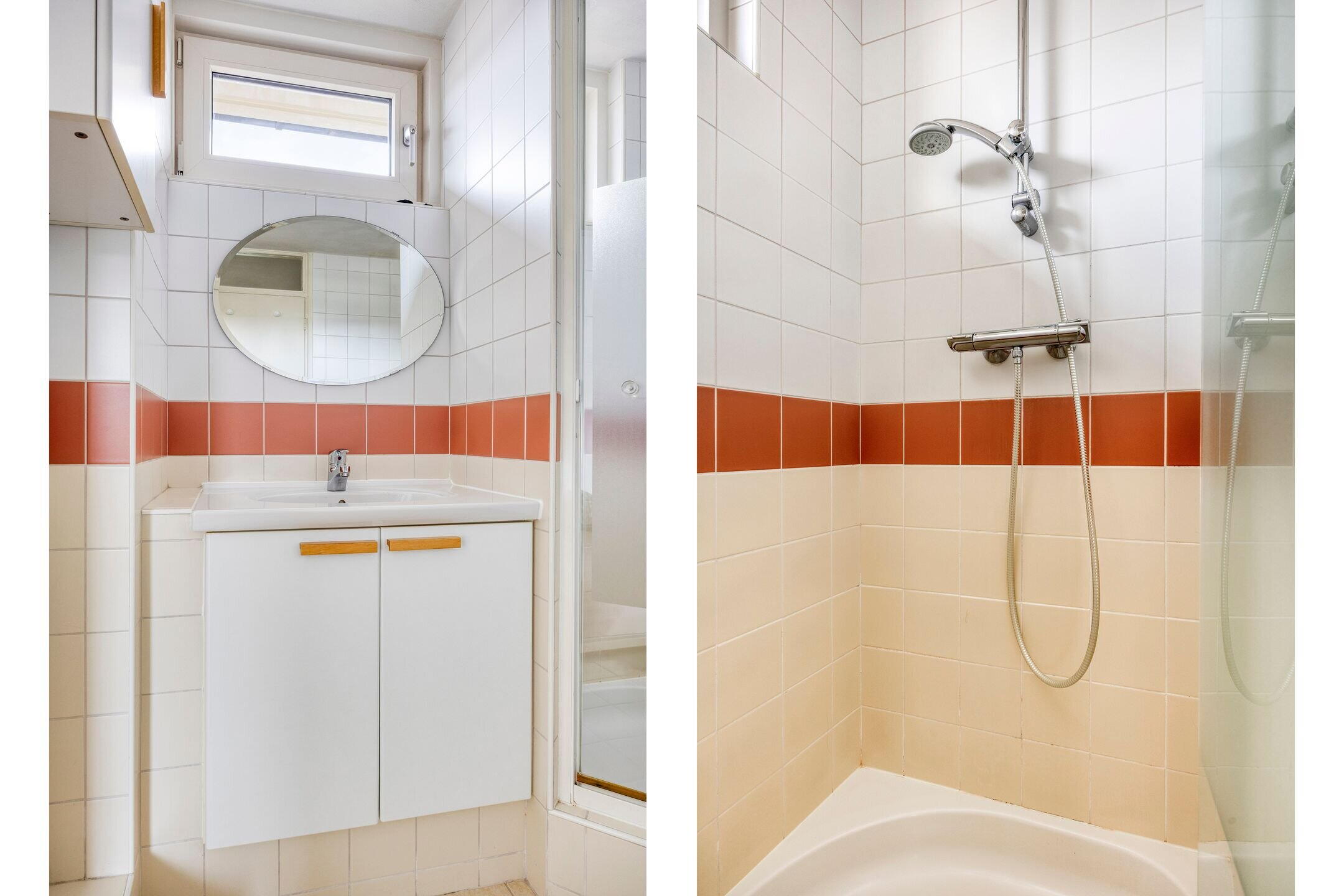 lichte badkamer met douchecabine, wastafelmeubel en 2e toilet.