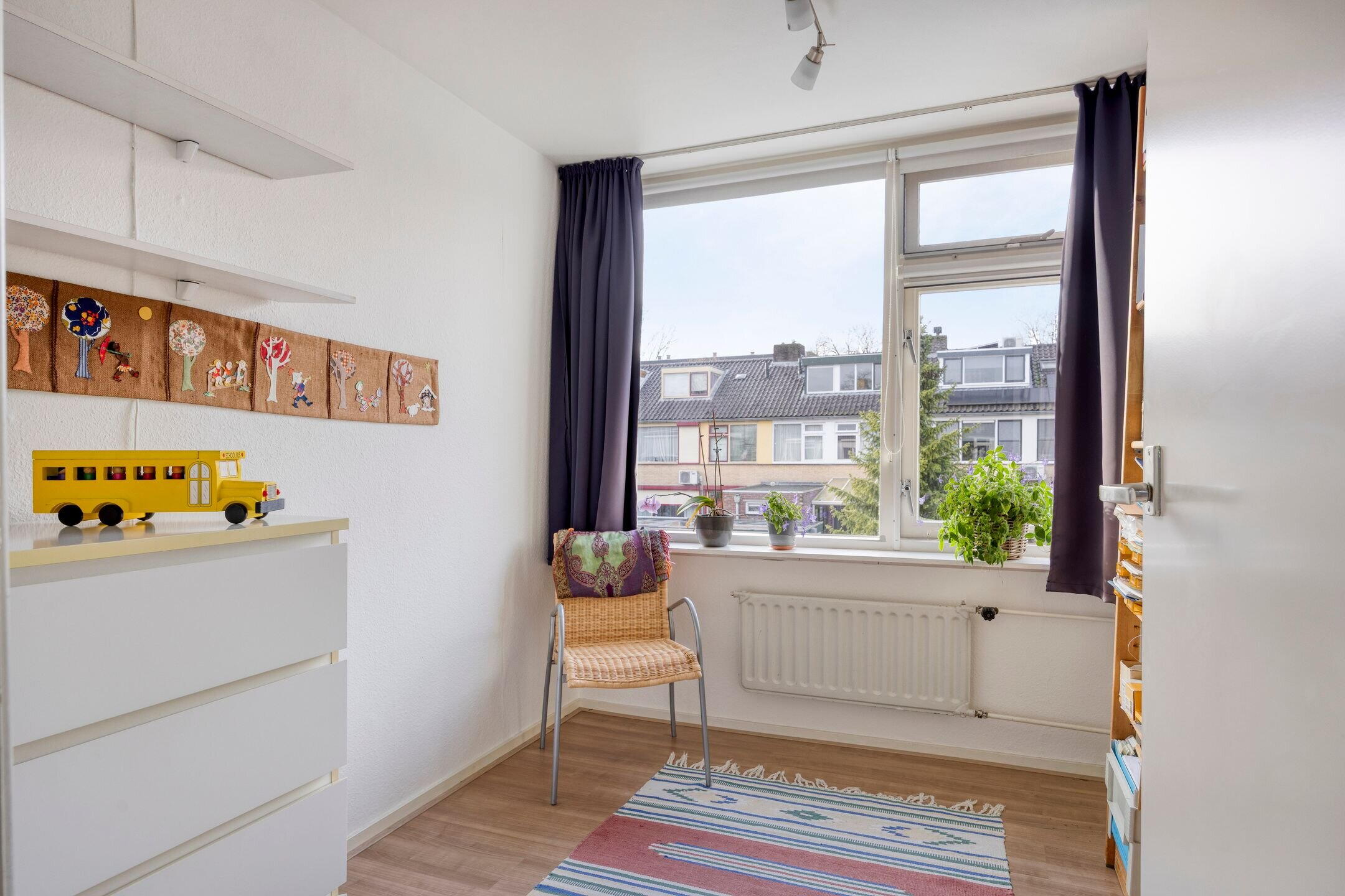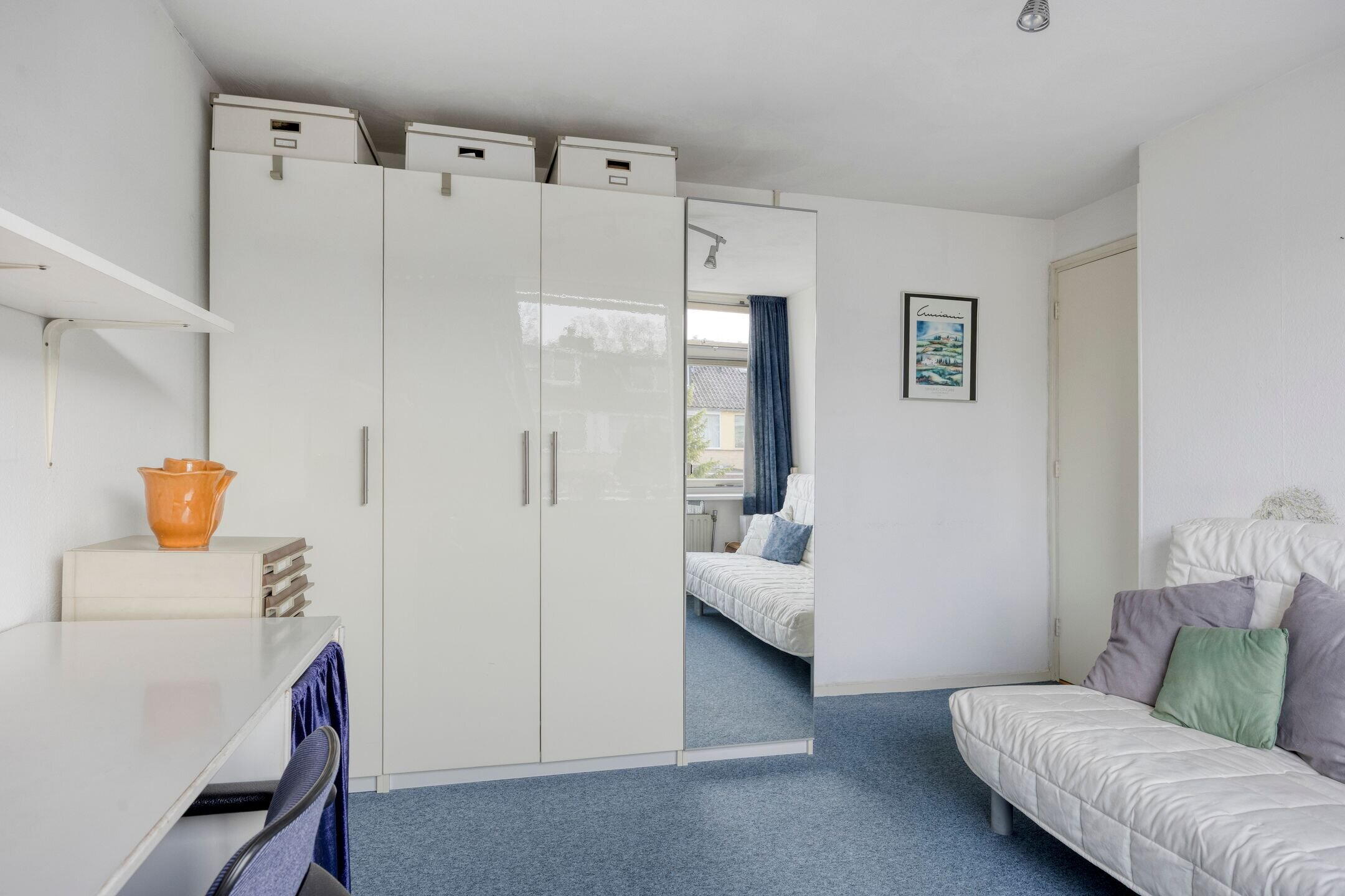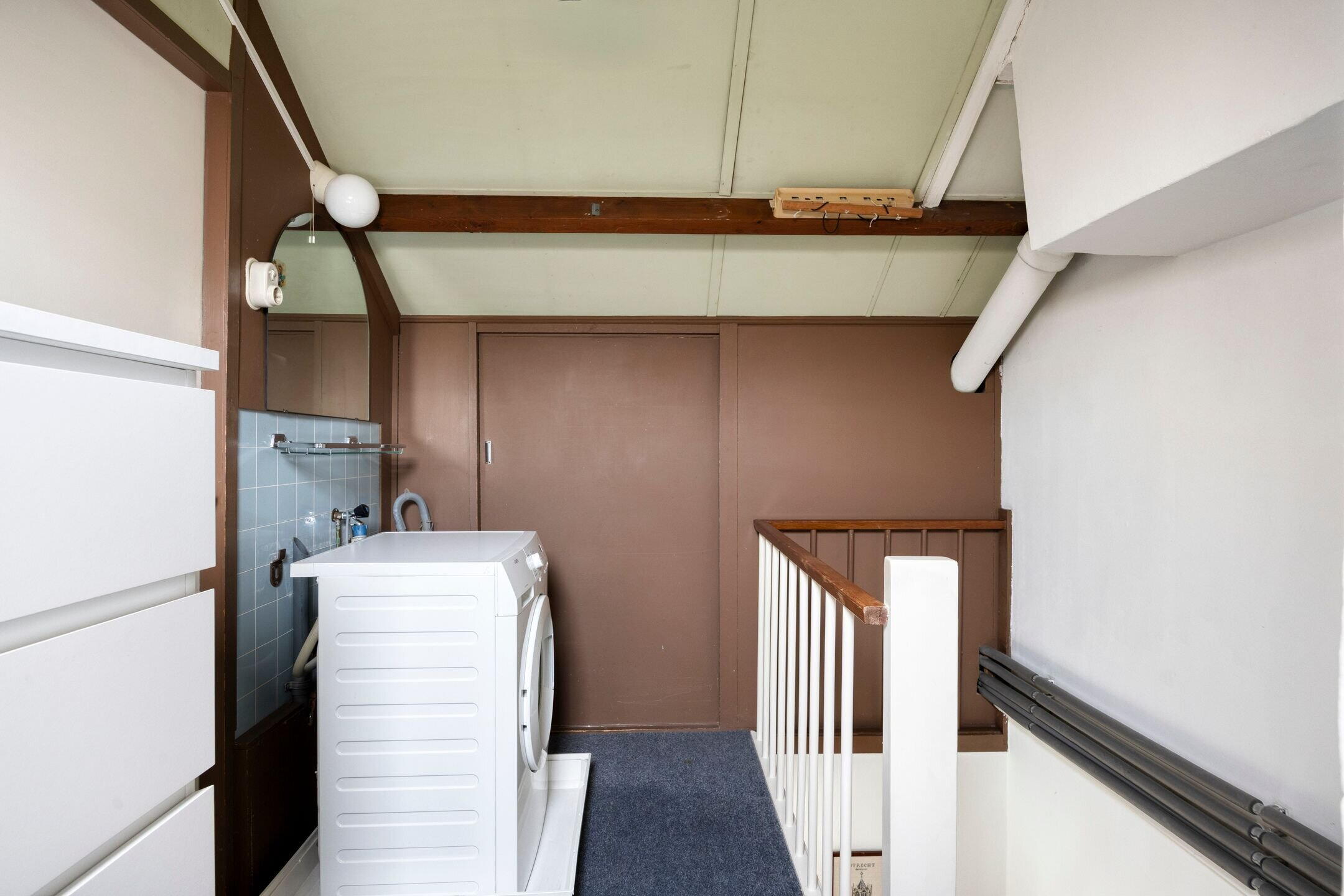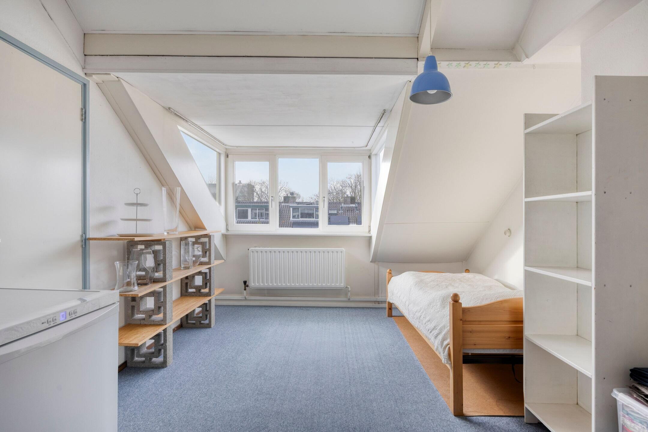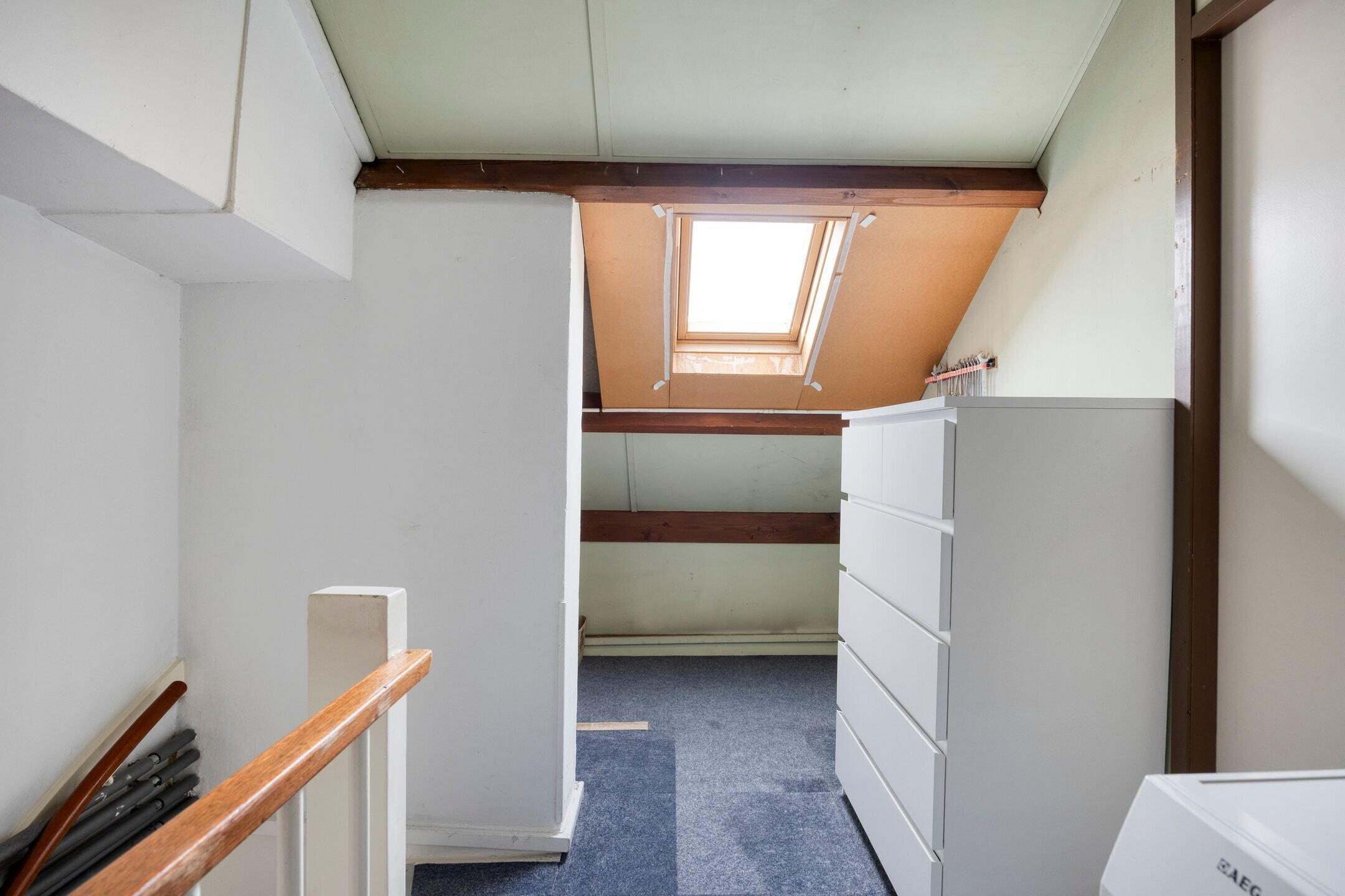 Bereikbaar via een vaste trap, voorzolder met opstelplaats voor wasapparatuur en de c.v. combiketel, een ruime 4e slaapkamer met dakkapel. Verder is er veel bergruimte achter de knieschotten.