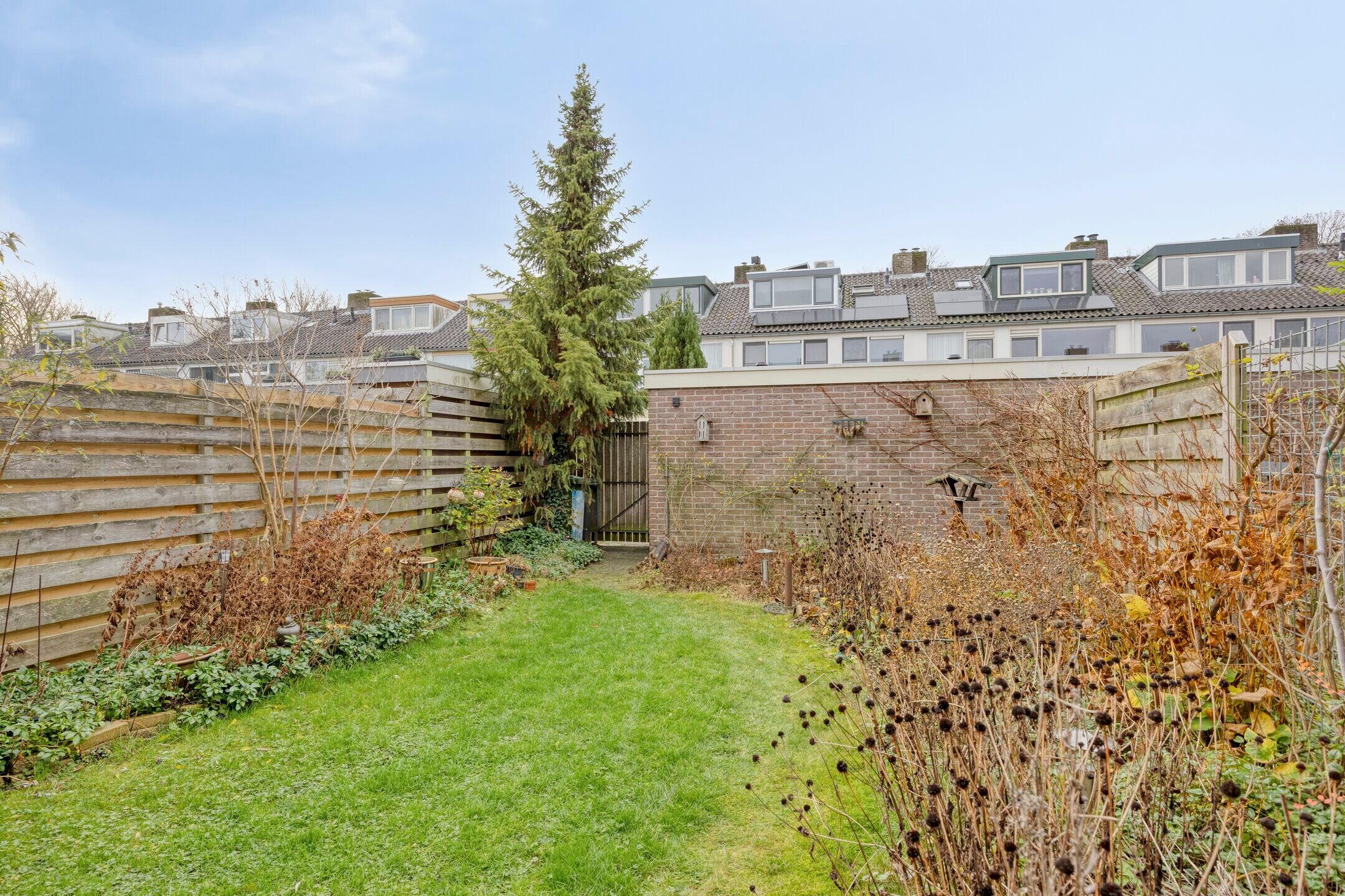 De zonnige diepe achtertuin met zijn ligging op het Zuid/Westen is fraai aangelegd en met veel zorg onderhouden. Aan de achterzijde van het perceel staat een riante stenen berging en een achterom.